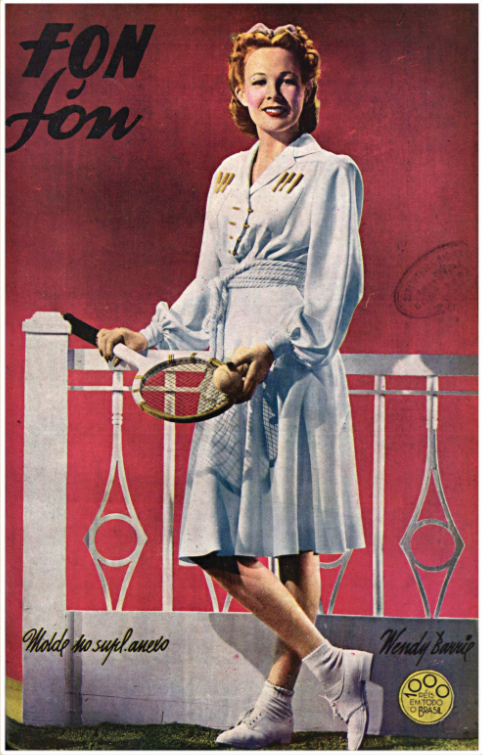 A atriz inglesa Wendy Barrie, estrela do cinema em Hollywood, posa com trajes de tenista.