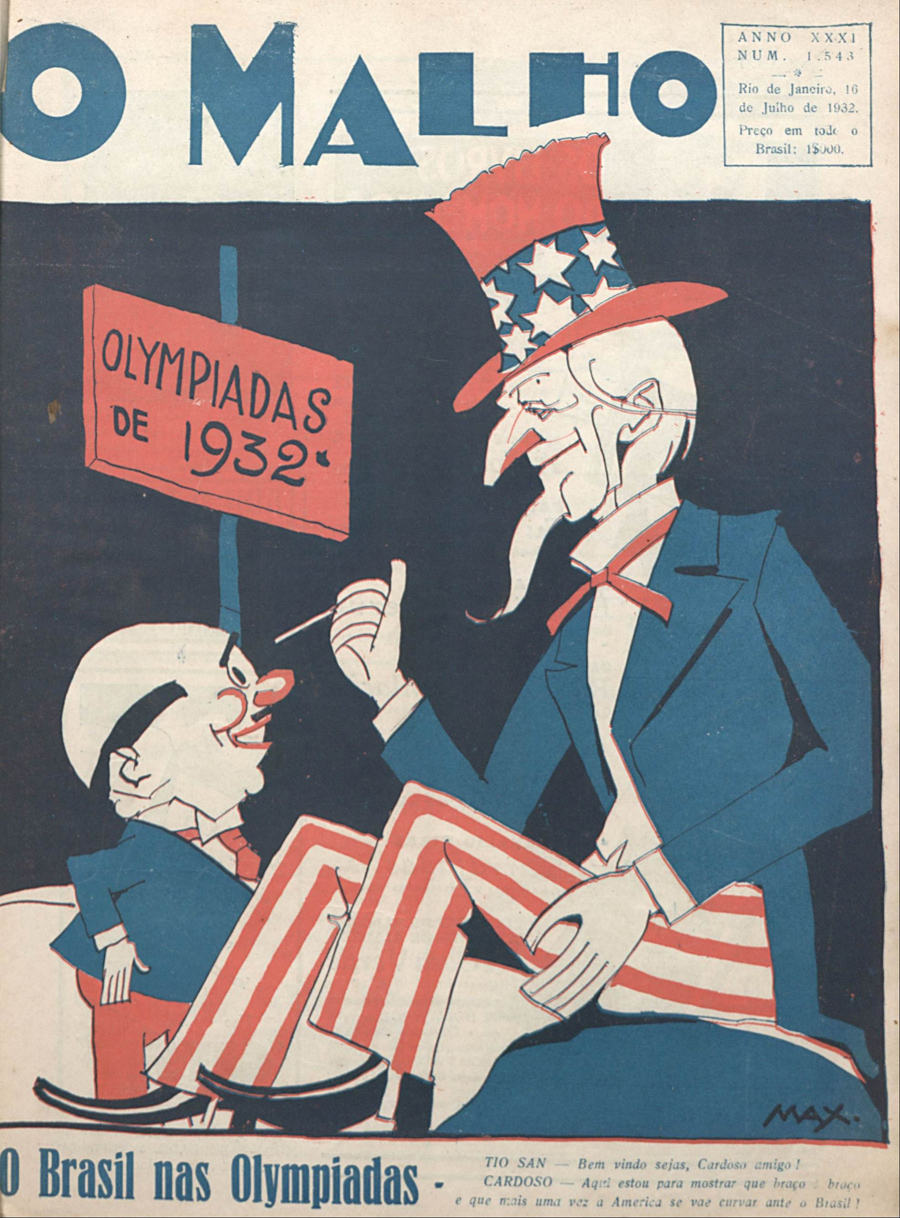 Sugestiva caricatura de Tio Sam, em alusão ao início das Olimpíadas de Verão em Los Angeles, no ano de 1932.